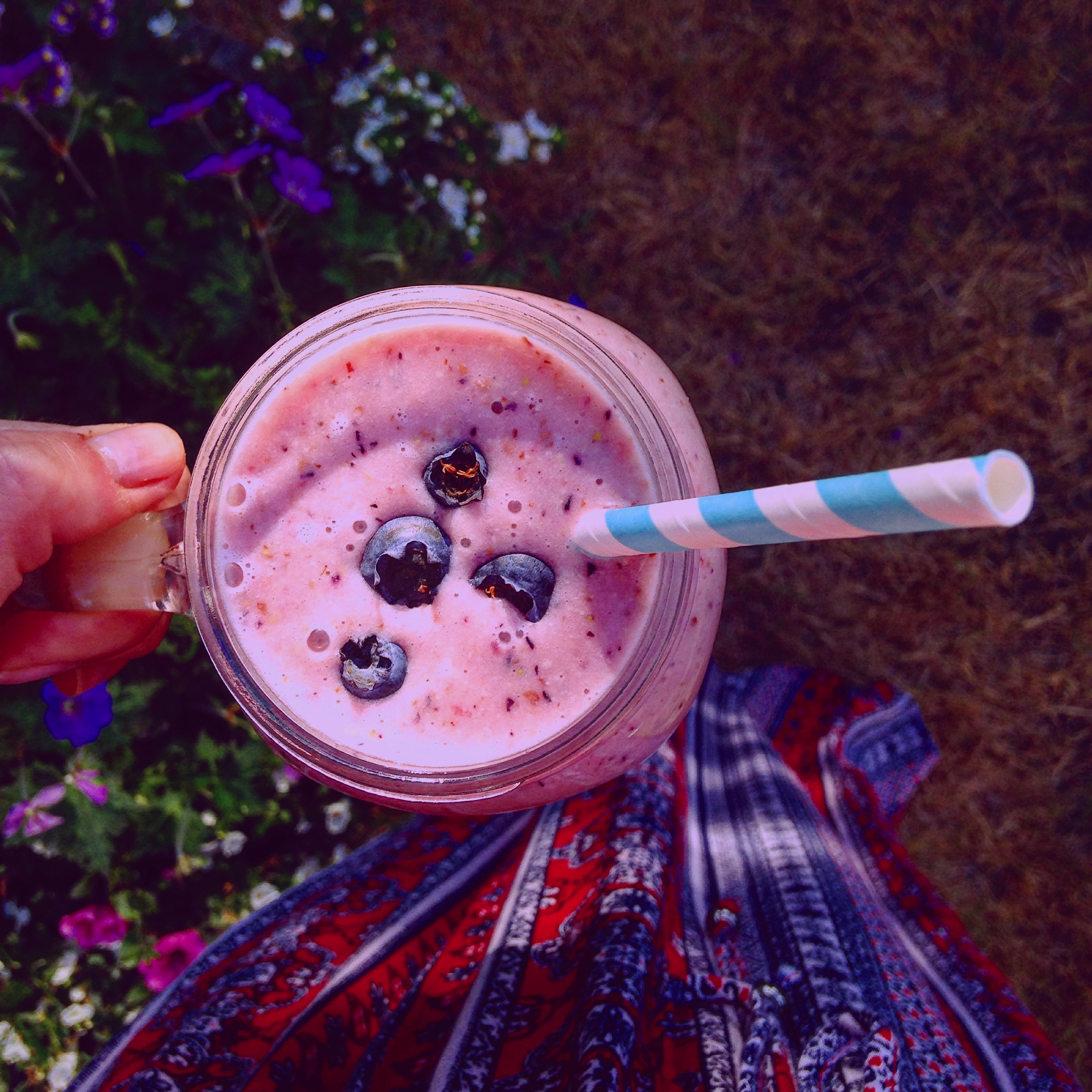 This is my sumptuous Blueberry Belter smoothie, a delightful concoction of delicious and nutritious fresh, antioxidant-rich ingredients. It is a cheeky blend of banana, blueberries, Vitacoco coconut water and almonds. I also added a sprinkling of organic Maca powder to make it extra magical. Almonds are a great source of protein and they contain gorgeous fatty acids that are essential for brain function. They are also amazing for the skin, helping to fortify the liver and its ability to detoxify.