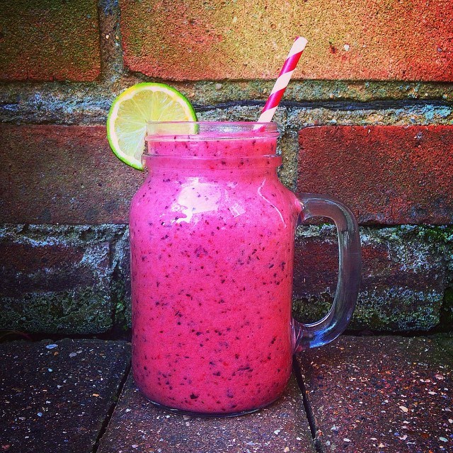 To get this to happen in your life, you will need; 1 banana, a handful of raspberries, some blackberries, 1 lime and the juice of 1 orange. Pour the delicious blend over some crushed ice and serve. To make it look pretty, you can add a slice of lime and perhaps a sprig of mint if you too are in a rambunctious mood.