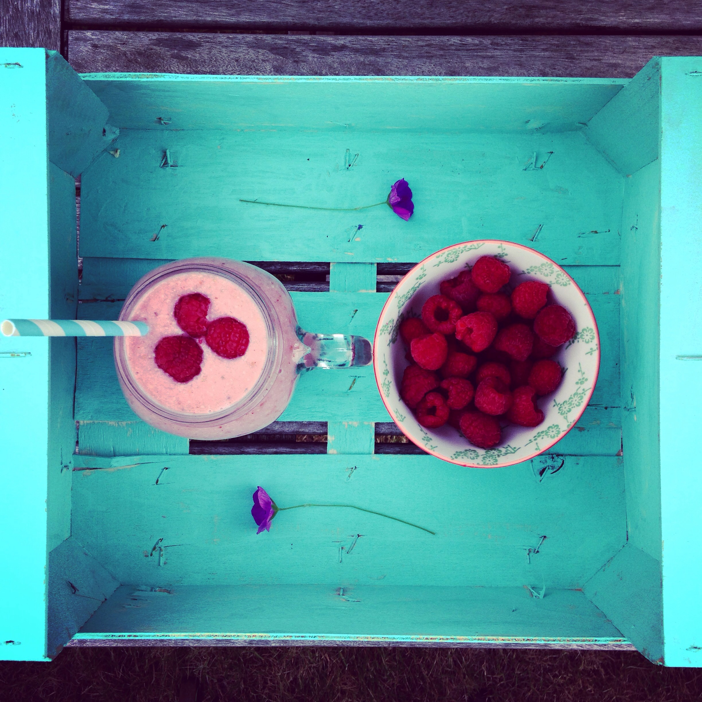Blend until creamy and smooth. Serve with a side of raspberries.