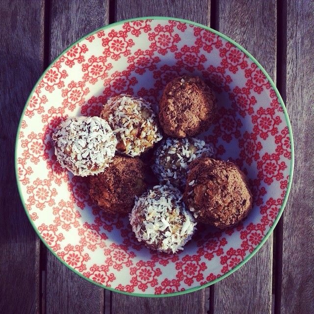 Roll into balls and coat in whatever takes your fancy. I like cacao powder and coconut. Chopped almonds and pistachios are also pretty special.