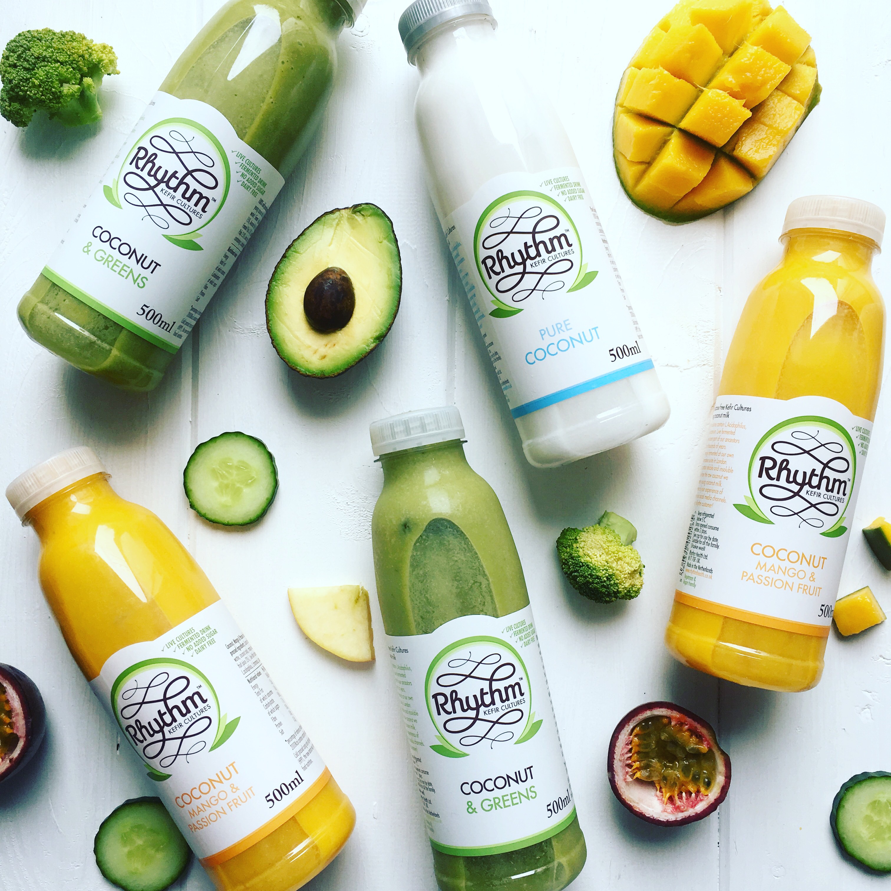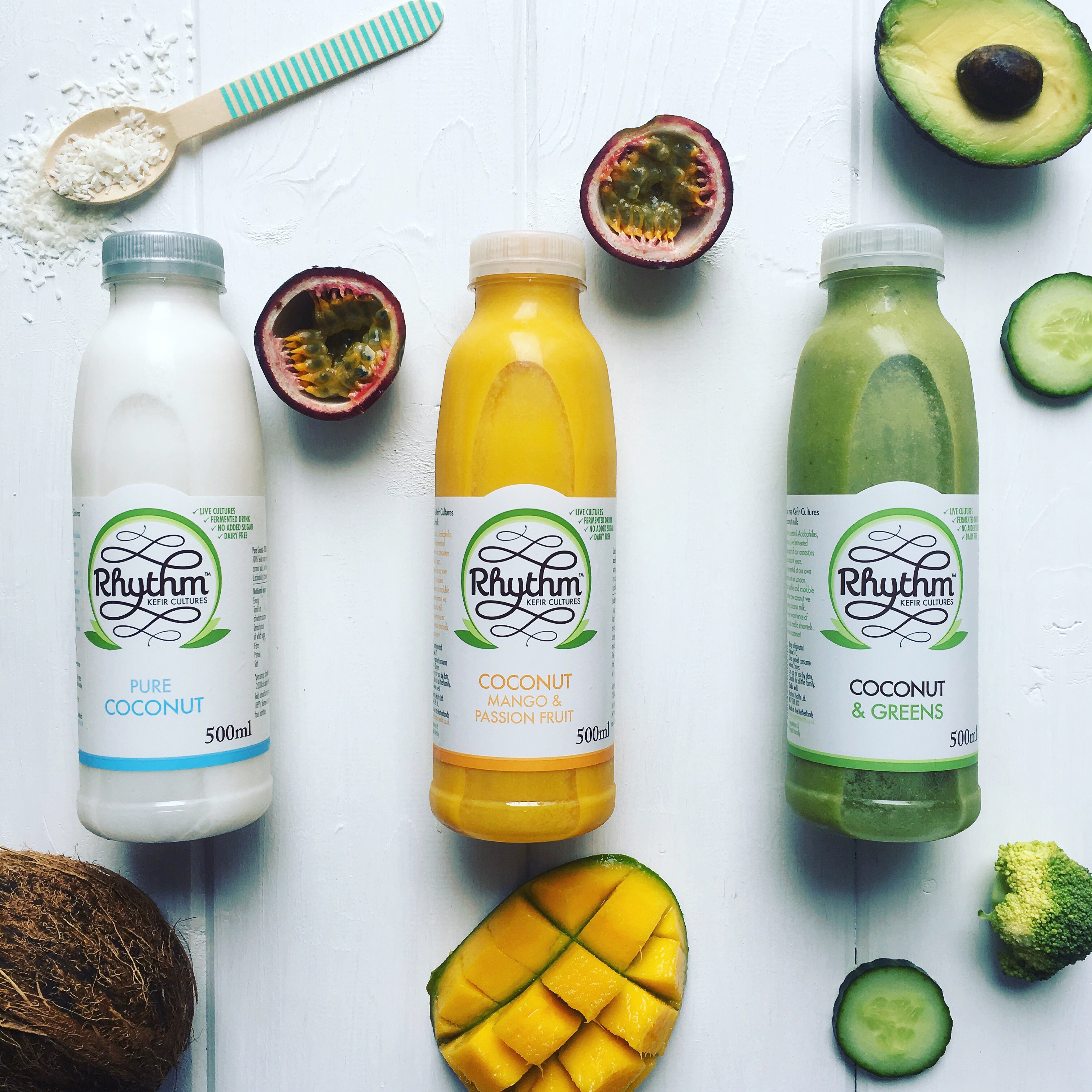 In a (coconut) shell, ‘Vegan Kefir is a fermented drink made by adding kefir cultures which are a ‘living colony’ made up of billions of naturally-occurring bacteria and yeast. These ferment in harmony with the tender young coconut mixture to create Rhythm Kefir”