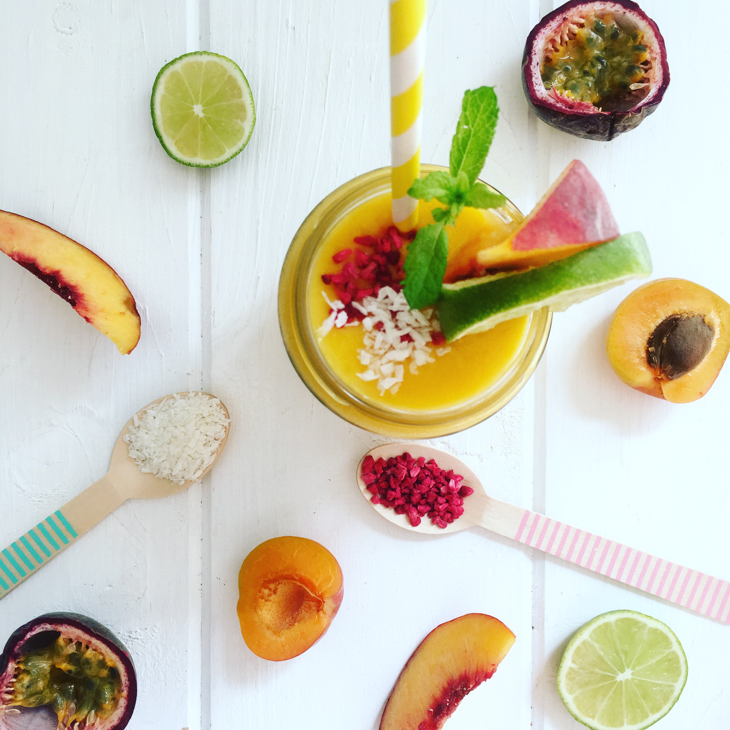 It’s a little bit late but August is National Peach Month! Thus, I’ve created a delicious and nutritious Peach, Apricot & Passionfruit smoothie to bring an extra bit of sunshine to your day!