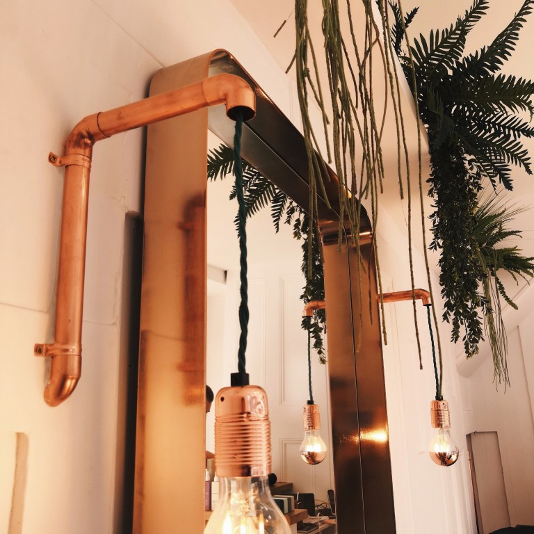 I made a mood board to start with and dusty pink, green and copper were the features. It’s so nice to work in a space that you’ve designed yourself!