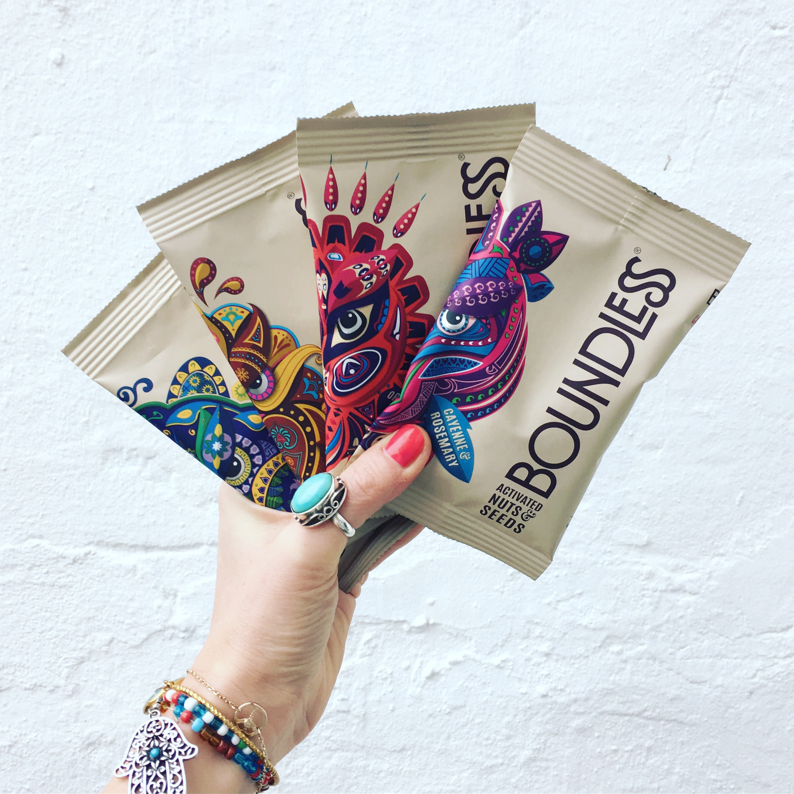 Boundless activated nuts & seeds, you are beautiful! Let me just appreciate the beauty of your packaging for a second! Oh my days! Boundless have honed the FAB technique (Flood, Activate, Bake), used by the Aztecs & Aborigines to unlock the nutritional potency of their products! The act of ‘activation’ is a remarkable one; the ‘flooding’ process kicks-starts nature’s natural germination process, ‘activating’ removes the phytic acid enabling better digestion and gently ‘baking’ with natural ingredients gives a fuller, richer flavour!