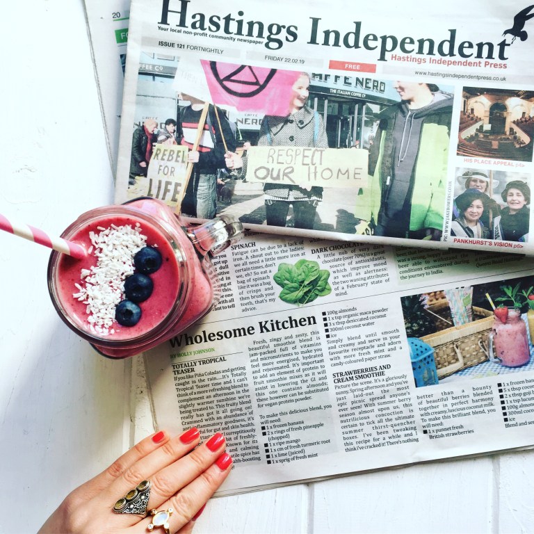 I also picked-up the latest Hastings Independent Pres in which are two of my nutrilicious smoothie blends! I feel so blessed and grateful to have the support of this amazing, free paper. It’s run completely by volunteers and they’ve been incredible over the past year since my first recipe was published. Time has flown-by so quickly and I am so excited for the next chapter of my kitchen.