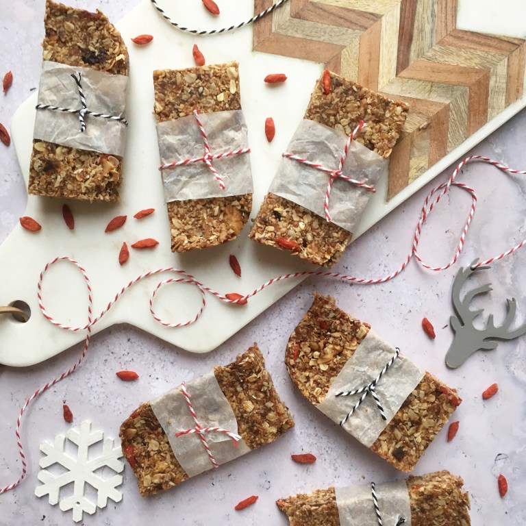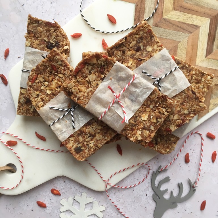 It’s beginning to look a lot like Christmas and I’ve had lots of fun creating these delicious gluten-free, no-bake vegan granola bars. They are so simple to make and they taste absolutely incredible! The base of the mix can be tweaked and added to with various ingredients; nuts, spices, seeds etc. The granola world is your oyster!