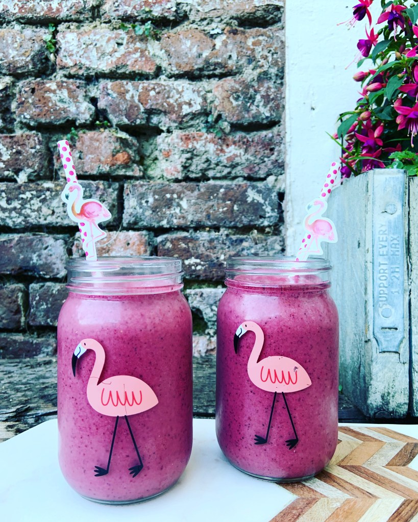 1 x cup of berries, frozen & fresh, 1 x banana, 3 x tbsp of coconut nectar/coconut milk/ground almonds, 400ml of coconut water. Blend until lusciously creamy and slurp! Eat, Sleep, Smoothie, Repeat.